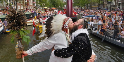"Toll, dass das im toleranten Amsterdam möglich ist", sagt ein New Yorker. Er und sein frischgebackener Ehemann sind eines der fünf niederländisch- amerikanischen Paare, die Bürgermeister Job Cohen während der Parade traut. Ein Hinweis auf die ungleiche Entwicklung von Homosexuellenrechten, 400 Jahre nach der Entdeckung Manhattans im Auftrag der niederländischen Ostindienkompanie: während Schwule und Lesben in nur sechs US-Staaten heiraten dürfen, waren die Niederlande 2001 weltweiter Vorreiter.